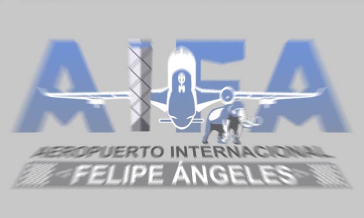 El logo del aeropuerto internacional Felipe Ángeles indica una masa amorfa, con unas letras de diseño básico, algo que parece un avión y un mamut al frente de todo.