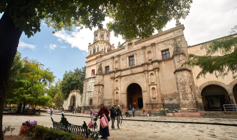 Coyoacán, antiguo pueblo, que la Ciudad, al ir creciendo, lo envolvió hasta convertirlo en un barrio pintoresco en el cual sobresale la majestuosa iglesia de San Juan Bautista.