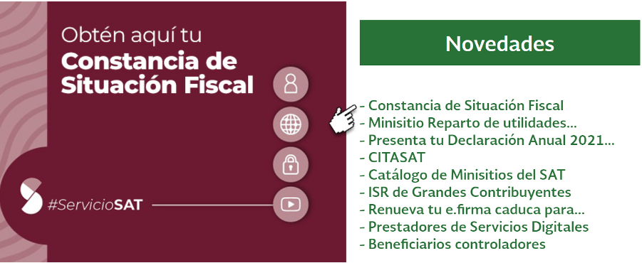 El SAT recomendó a los contribuyentes conozcan y mantengan actualizada en todo momento su información fiscal contenida en la Constancia de Situación Fiscal, la cual, dijo, es como su acta de nacimiento ya que contiene datos de identificación, ubicación y obligaciones fiscales, tales como el Registro Federal de Contribuyentes (RFC), nombre o razón social, código postal del domicilio fiscal y régimen fiscal.