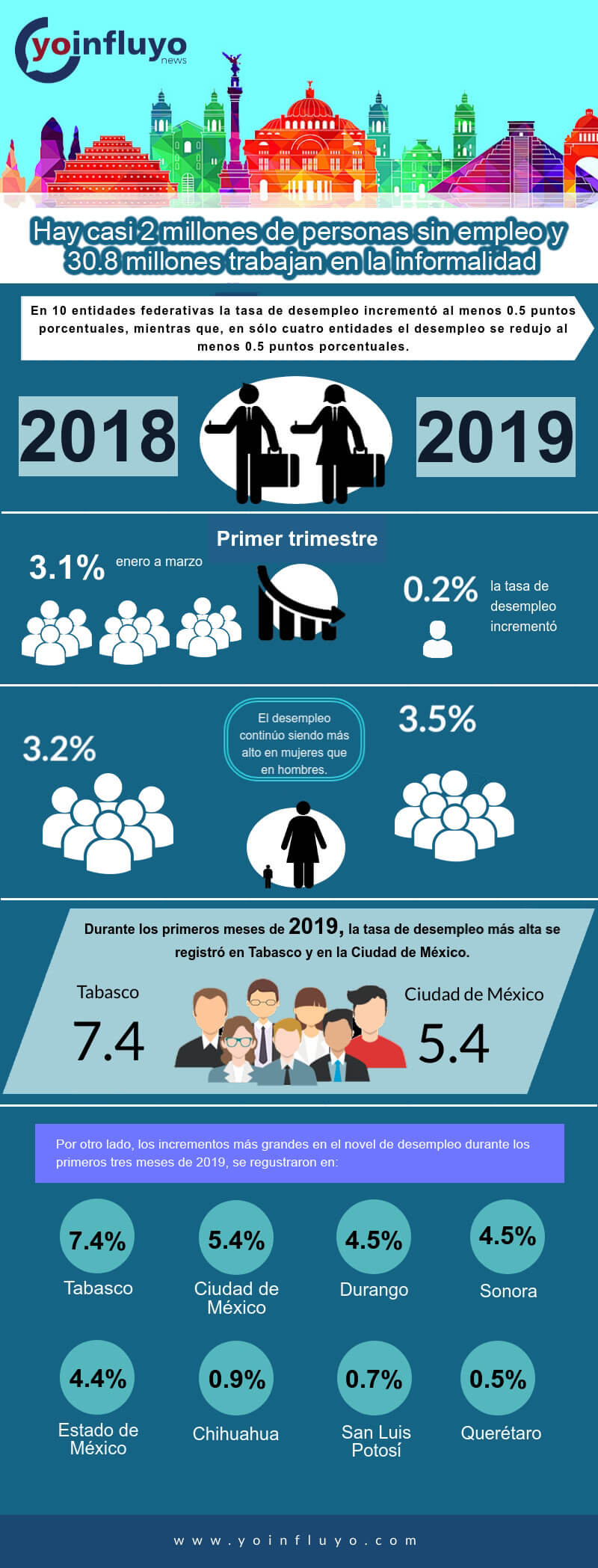 De acuerdo con la última Encuesta Nacional de Ocupación y Empleo, entre enero y marzo, 1.9 millones de personas se encontraban sin empleo. Ese número de personas manifestó que no tenía trabajo y que estaba buscando uno.