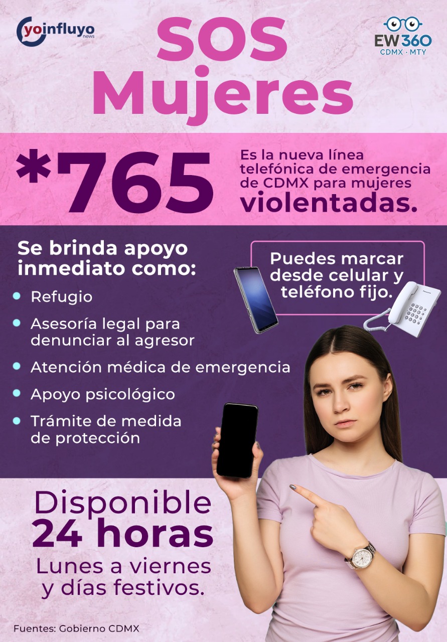 La línea *765 SOS Mujeres brinda atención médica de emergencia, apoyo psicológico y trámites de medida de protección a mujeres violentadas.