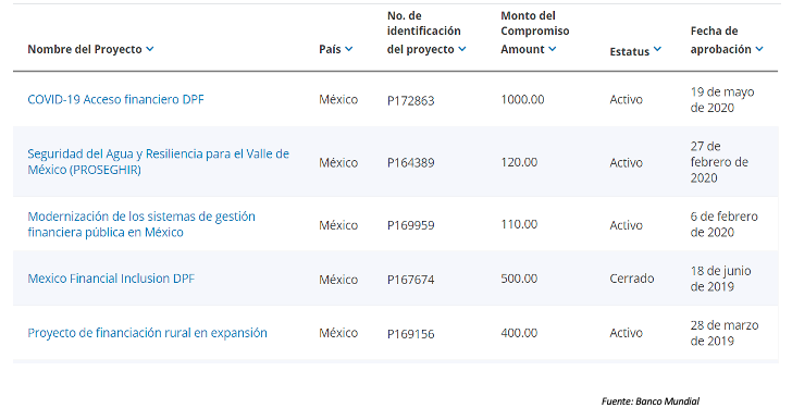 Bajo el argumento de responder a los daños ocasionados por la pandemia a la economía nacional, a principios de junio de 2020 el Banco Mundial dio un préstamo a México por un monto de mil millones de dólares. Con este suman cinco los créditos (tres en el presente año y dos en 2019) que esta institución otorga al país en la administración de Andrés Manuel López Obrador.