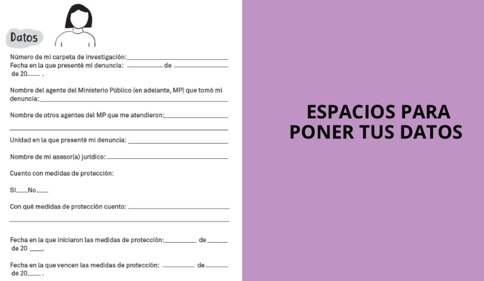 En casos de que ya exista una denuncia, las víctimas tendrán a su disposición zonas para escribir la información más importante de su proceso y sus fechas de audiencias. Además, estará disponible un apartado especial, en el que las víctimas puedan conocer sus derechos y estar actualizadas con números telefónicos importantes durante sus procesos. El Carnet de Denuncias será un documento especializado con toda la información que una persona necesita saber antes de hacer una acusación y mientras esta se encuentra en proceso.