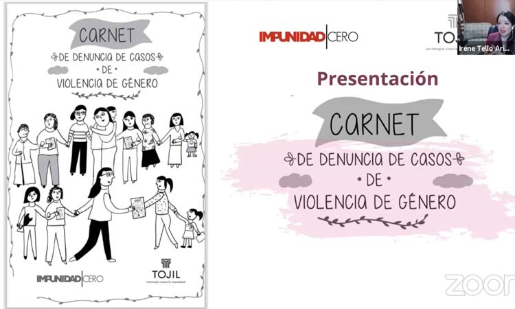 Impunidad Cero y la iniciativa Tojil lanzaron un Carnet de Denuncia de Casos de Violencia de Género, con el objetivo de crear una herramienta para acompañar a víctimas de violencia en sus procesos penales. Ambas instituciones aseguraron que el lanzamiento del Carnet de Denuncias fue con motivo del Día Internacional de la Mujer, conmemorado el 8 de marzo.