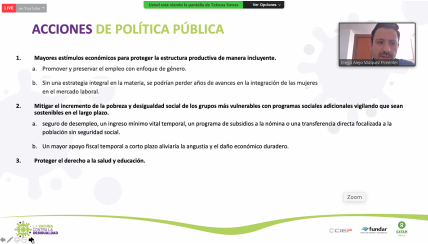 Diego Vázquez Pimentel, director de investigación de Oxfam México, indicó que es necesario contar con una estrategia para frenar los efectos económicos negativos ocasionados por la pandemia que podrían persistir en el tiempo afectando a las futuras generaciones.