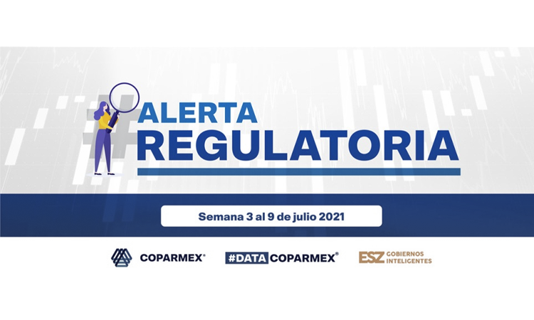 Por otra parte, en el periodo que comprende del 3 al 9 de julio de 2021, la Alerta Regulatoria, herramienta creada por la Coparmex, observó el ingreso de 18 nuevos proyectos regulatorios a la Comisión Nacional de Mejora Regulatoria (Conamer), de los cuales uno fue clasificado como regulación con costo económico y/o social, por lo que tendrá un Análisis de Impacto Regulatorio (AIR) y una consulta pública.