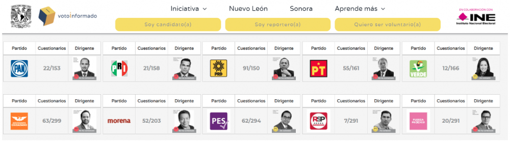 A fin de acercar a los ciudadanos herramientas útiles que les permitan de primera mano conocer todo lo relacionado con las elecciones y los candidatos, el Instituto Nacional Electoral (INE) y la Universidad Nacional Autónoma de México (UNAM) pusieron en marcha la plataforma Voto Informado desarrollada por la Máxima Casa de Estudios.
