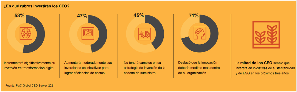 El informe observa que el 2020 fue un momento de disrupciones sin precedentes para los CEO, desde mantener la continuidad de las operaciones hasta priorizar la salud de sus colaboradores y brindar un espacio de trabajo seguro, destaca el informe de PwC.