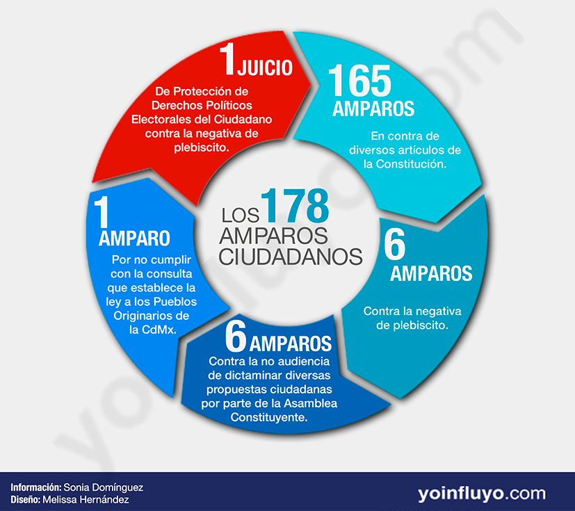 También se presentó un amparo ante el Juzgado de distrito en materia Administrativa y un Juicio para la protección de los derechos político-electorales del ciudadano (JDC) ante el Tribunal Electoral del Poder Judicial de la Federación por la negativa del jefe de Gobierno, Miguel Ángel Mancera, a convocar a un plebiscito que permitiese a los ciudadanos expresar su apoyo u oposición a esta Constitución.