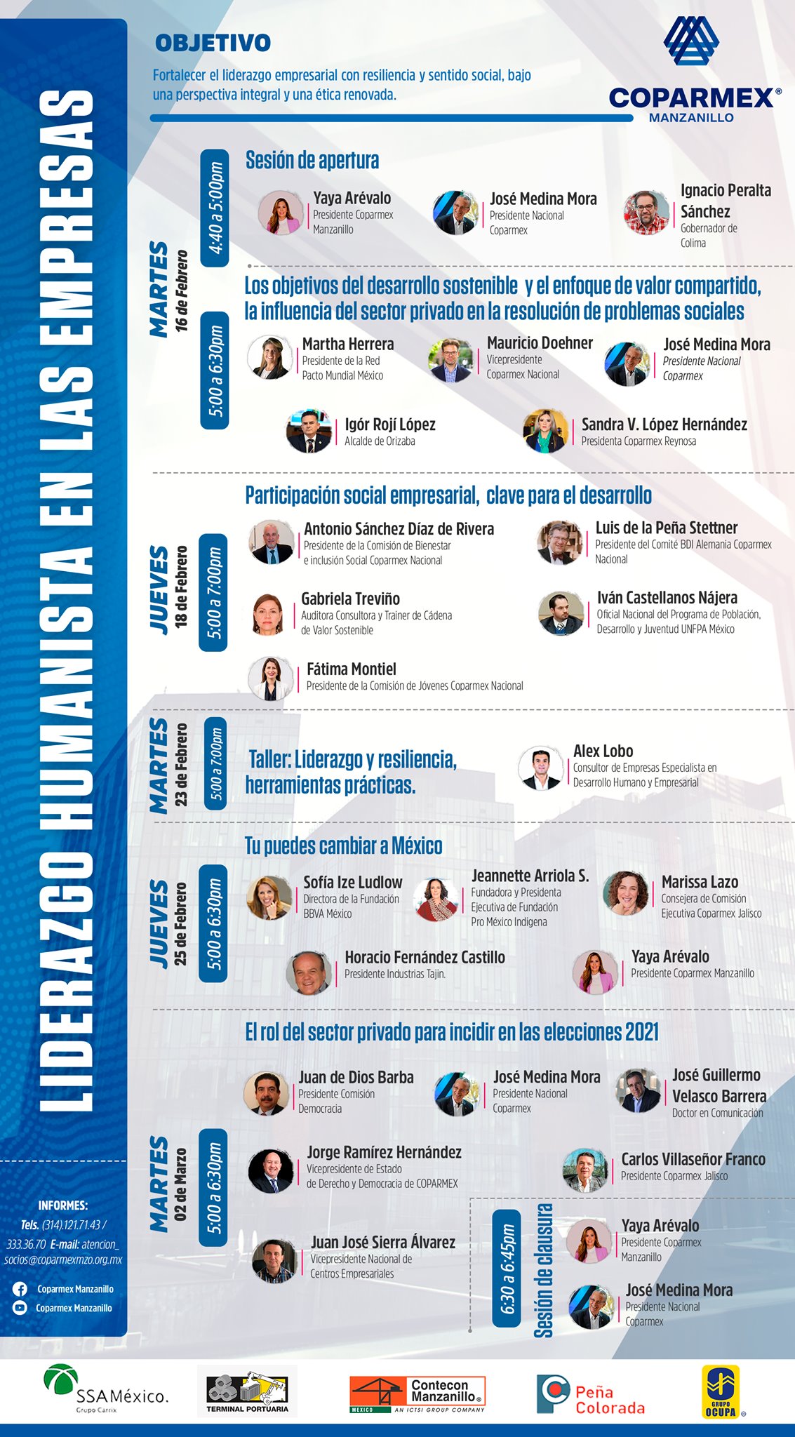 Con el propósito de inspirar y compartir herramientas que fortalezcan el liderazgo integral personal y dentro de las empresas con resiliencia y sentido social, la Confederación Patronal de la República Mexicana (Coparmex) llevará a cabo el Seminario de Liderazgo Humanista.