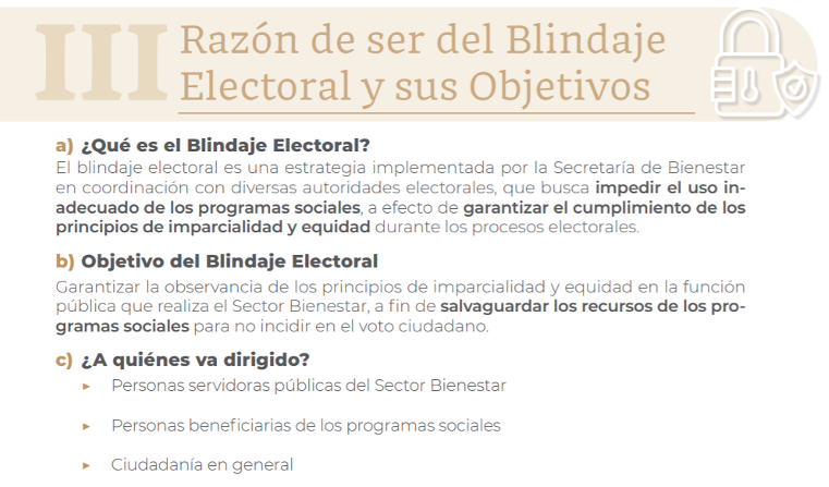 Este programa de blindaje electoral está dirigido a personas servidoras públicas del sector bienestar, beneficiarios de los programas sociales y la ciudadanía en general.