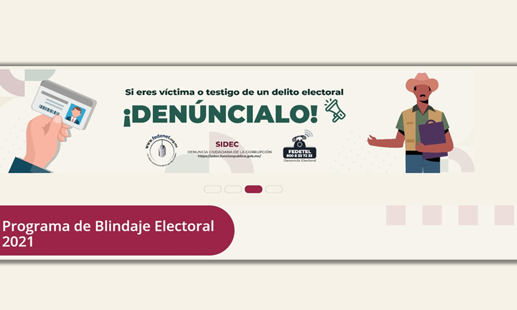Por otra parte, como una manera de que la ciudadanía se sume a la vigilancia y protección de los programas sociales, en el sitio del Blindaje Electoral 2021 se destaca el llamado a la población a presentar denuncias en caso de detectar delitos electorales, especificando las vías para proceder legalmente.