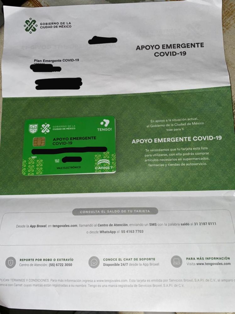 La tarjeta con los mil pesos de apoyo se entrega junto con una despensa y el sobre en el que viene el plástico asegura que sólo debe activarse la tarjeta y los mil pesos estarán listos para poder comprar en supermercados, farmacias y tiendas de autoservicio. Pero al llamar para activar la tarjeta en Locatel, se le informa a las personas que los mil pesos se les darán durante el transcurso de un mes y no inmediatamente como se indicó.