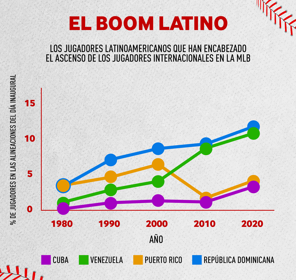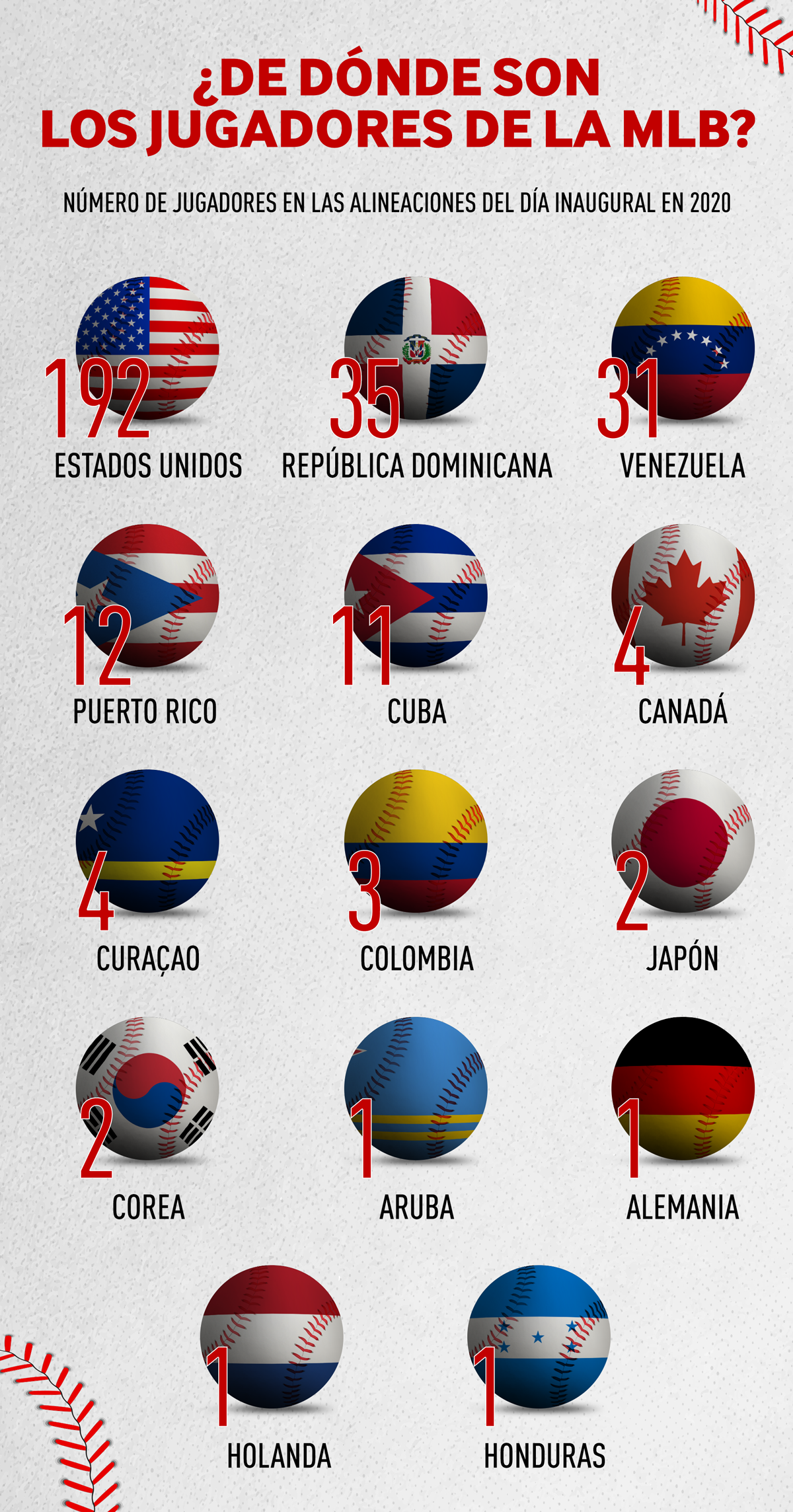 Jugadores de 14 naciones vieron acción, por ejemplo, en el día inaugural de la temporada, 10 de América, dos de Asia y dos de Europa, clara señal de que hace rato este deporte se globalizó y es de consumo masivo, tal y como señala la casa de apuestas MLB Betway.
