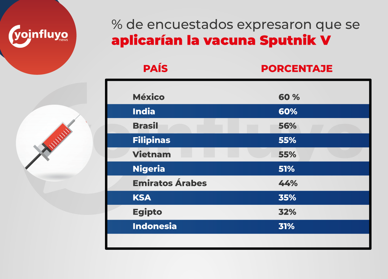 La encuesta se realizó antes de darse el anuncio sobre la efectividad de la vacuna Sputnik V con el 92 por ciento, días después de que la estadounidense Pfizer y la alemana BioNTech anunciaran que la vacuna que están desarrollando tiene una eficacia de un 90 por ciento.