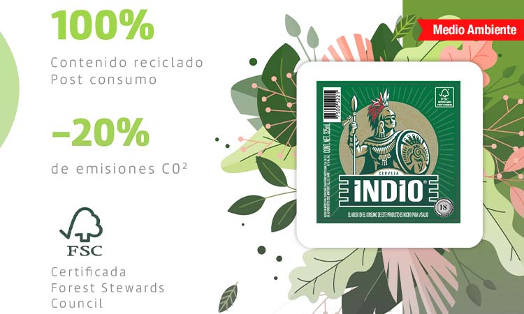 Con el fin de descarbonizar la cadena de producción y promover el cuidado del medio ambiente, la cerveza Indio presentó la primera etiqueta de México, elaborada de papel 100 por ciento reciclado. Esa acción es parte de la estrategia de sustentabilidad Brindar un mundo mejor, promovida por Heineken.