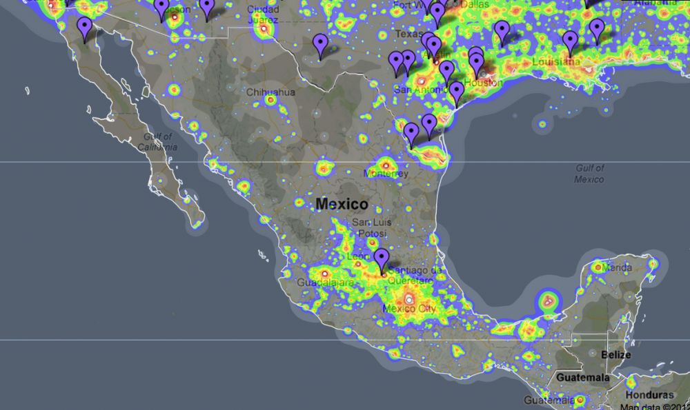 En México la contaminación lumínica se concentra principalmente en la zona centro, donde está Ciudad de México, Estado de México, Querétaro, Guanajuato, Michoacán y parte de Guadalajara.