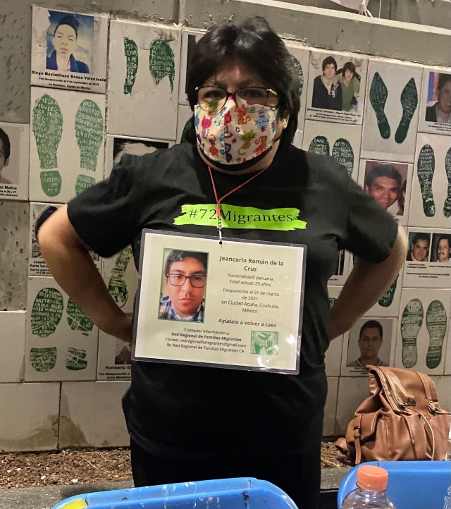 Entre llanto, Silvia de la Cruz, originaria de Perú, explicó que, junto con su esposo, vino a México a buscar a su hijo Jeancarlo Román de la Cruz, que desapareció hace nueve meses en ciudad Acuña, Coahuila, pero entre la desesperación por encontrarlo, su esposo se expuso en la búsqueda y ahora también esta desaparecido. Silvia suplicó a autoridades ayuda y atención a su caso, pues en Perú la esperan otras dos hijas.