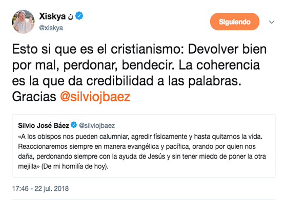 Al respecto, la ‘monja tuitera’ recordó lo que ha dicho monseñor Baez, obispo auxiliar de Managua, respecto al papel de la Iglesia en este diálogo: “somos elegidos por Daniel Ortega para ser mediadores en la mesa, pero no podemos renunciar a nuestra conciencia, no podemos apoyar la represión letal que esta haciendo este hombre porque también somos pastores, somos mediadores pero ante todos somos pastores”.